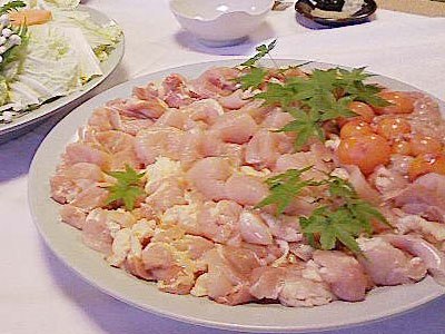 写真は、鶏肉のスキヤキ。野菜もお肉も大量、しかもマツタケまで出るという豪華っぷりでした。