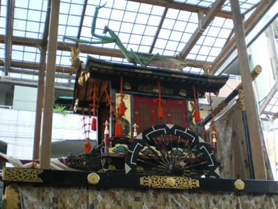 でも、夕方には結構できあがったところが多くて、見どころ満載でした。あと、山車ができてなくても、山車に乗せる人形やタペストリーは、別のところで公開されていたりしました。すっごい間近で、神功皇后や役行者の人形とかが見れるの!